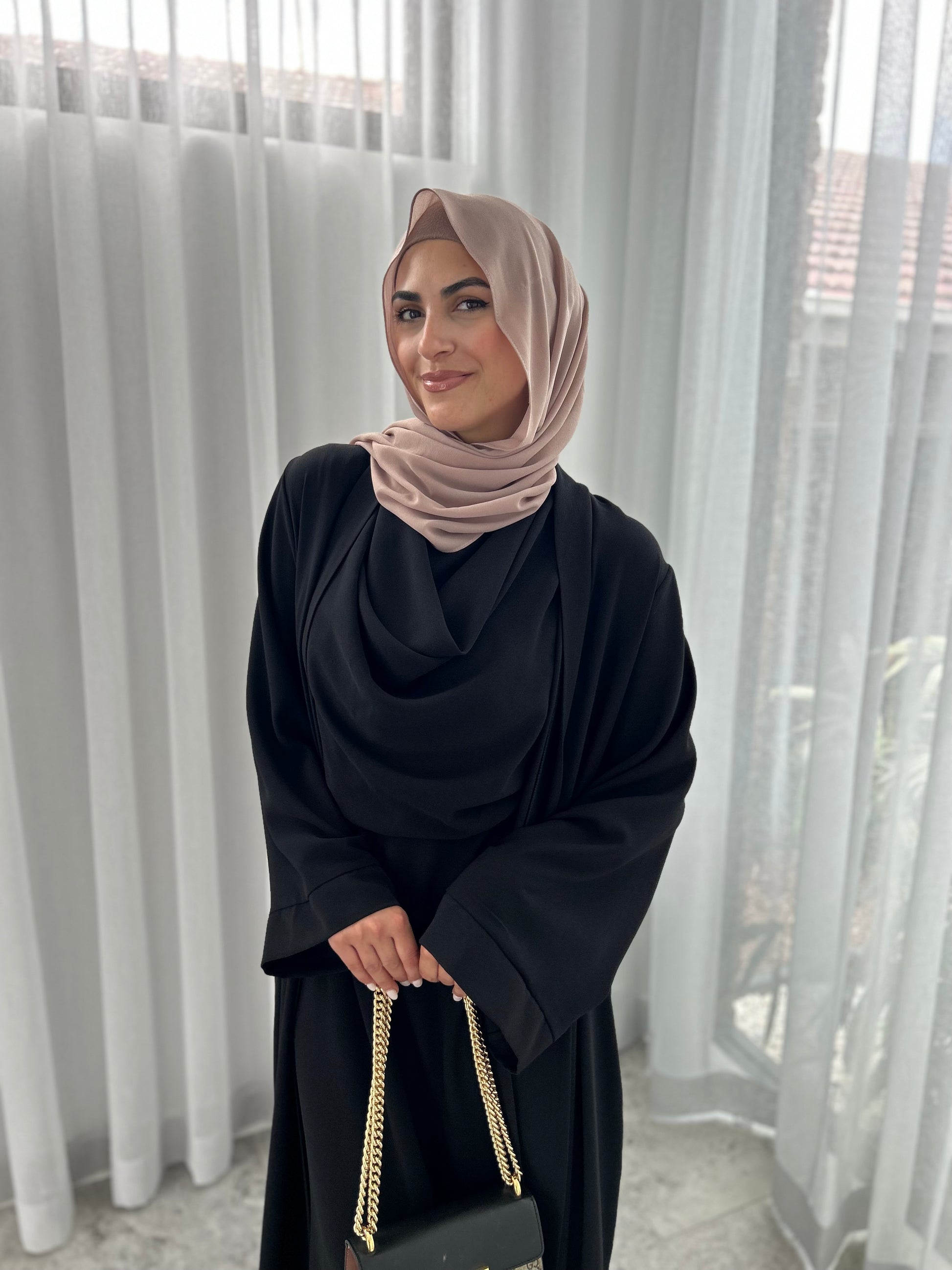 Amelia two-piece set, featuring a sleeveless A-line dress with a flattering cowl neckline paired with a stylish cardigan. Perfect for adding a touch of sophistication to any ensemble.