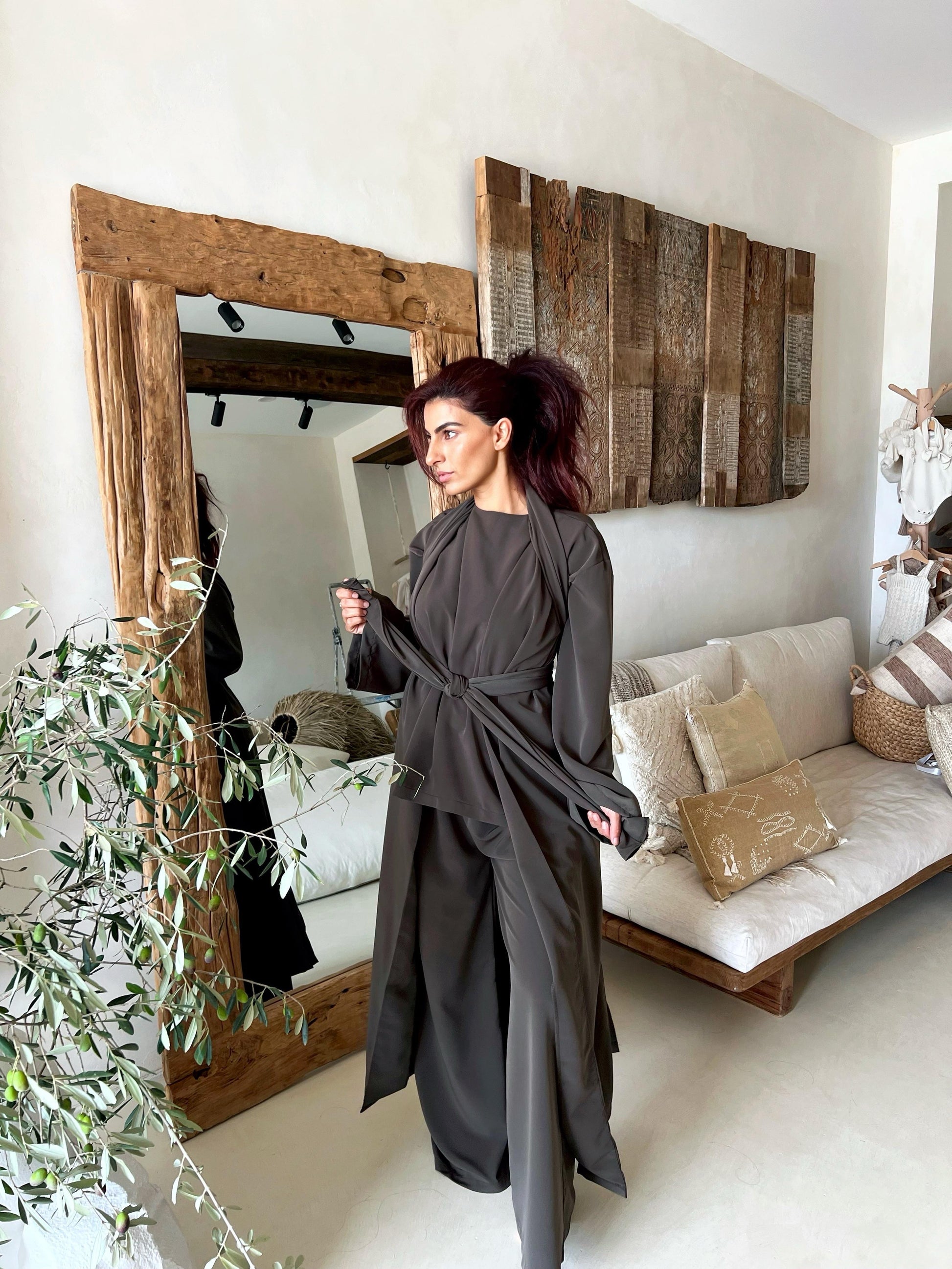 Celebrate Eid in style with our luxurious four-piece set, designed for elegance and comfort. Crafted from high-quality silk, this ensemble drapes beautifully, offering a modest yet sophisticated look. The set includes a perfectly tailored top and bottoms, complemented by a matching outer layer for added grace. A coordinating scarf completes the look, making it effortlessly chic for festive gatherings. Soft, breathable, and refined, this set is the perfect blend of tradition and modern elegance.