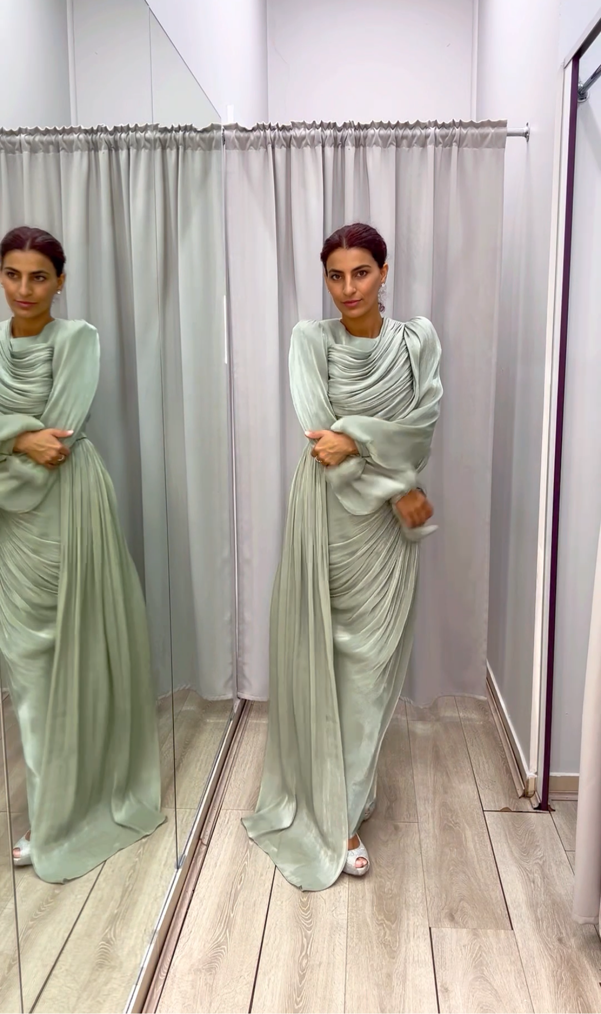 The Jasmine Dress is the perfect blend of elegance and charm, crafted from luxurious shiny silk that catches the light beautifully. Designed with delicate ruching for a flattering fit, it drapes effortlessly for a sophisticated look. The statement sleeves feature dainty bows, adding a touch of femininity and grace. Whether for a special occasion or an evening out, the Jasmine Dress is a timeless piece that exudes refined beauty.