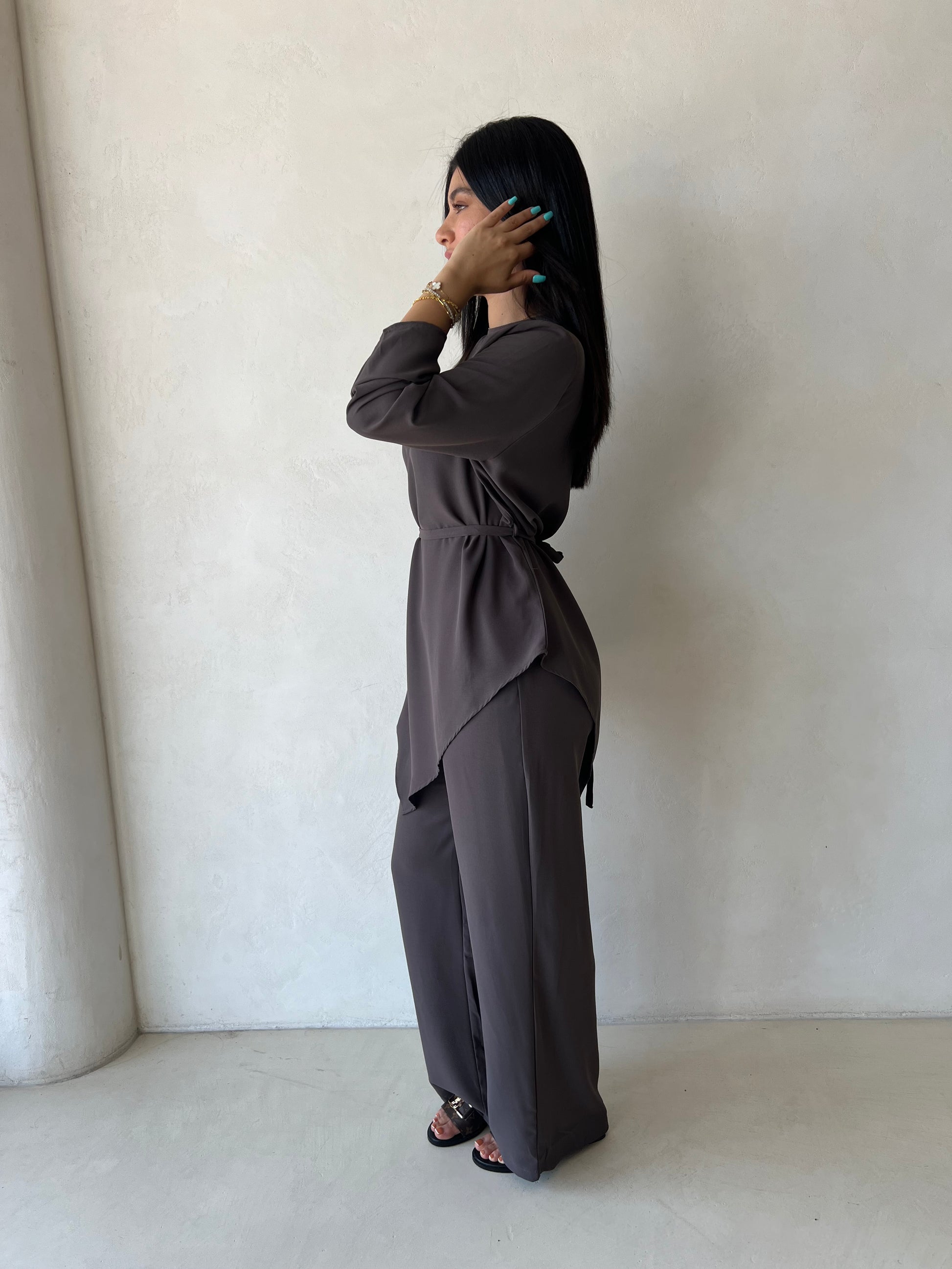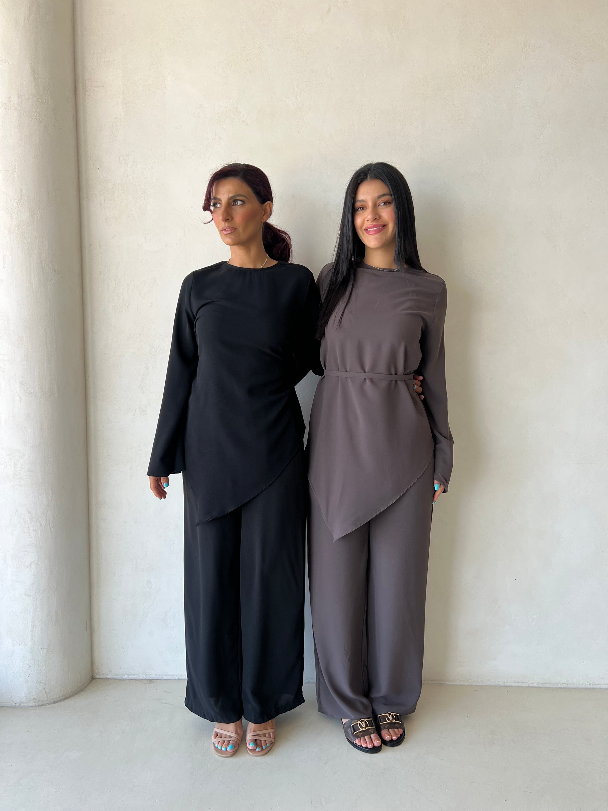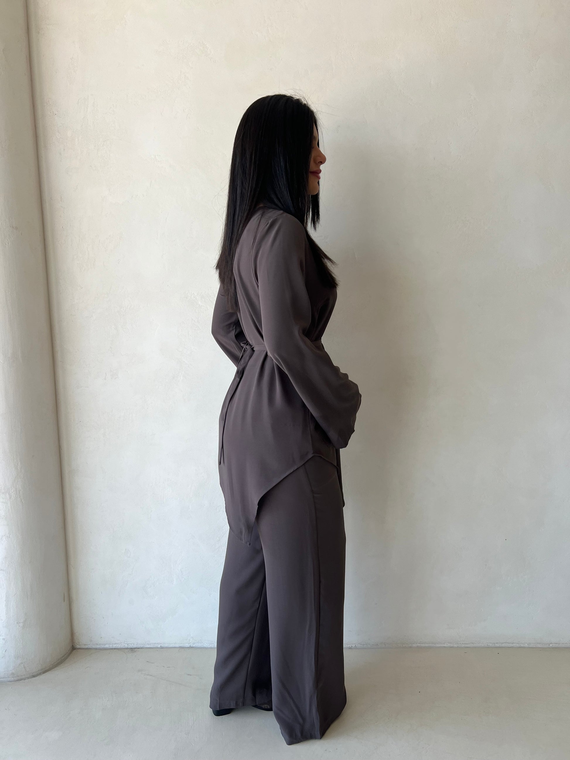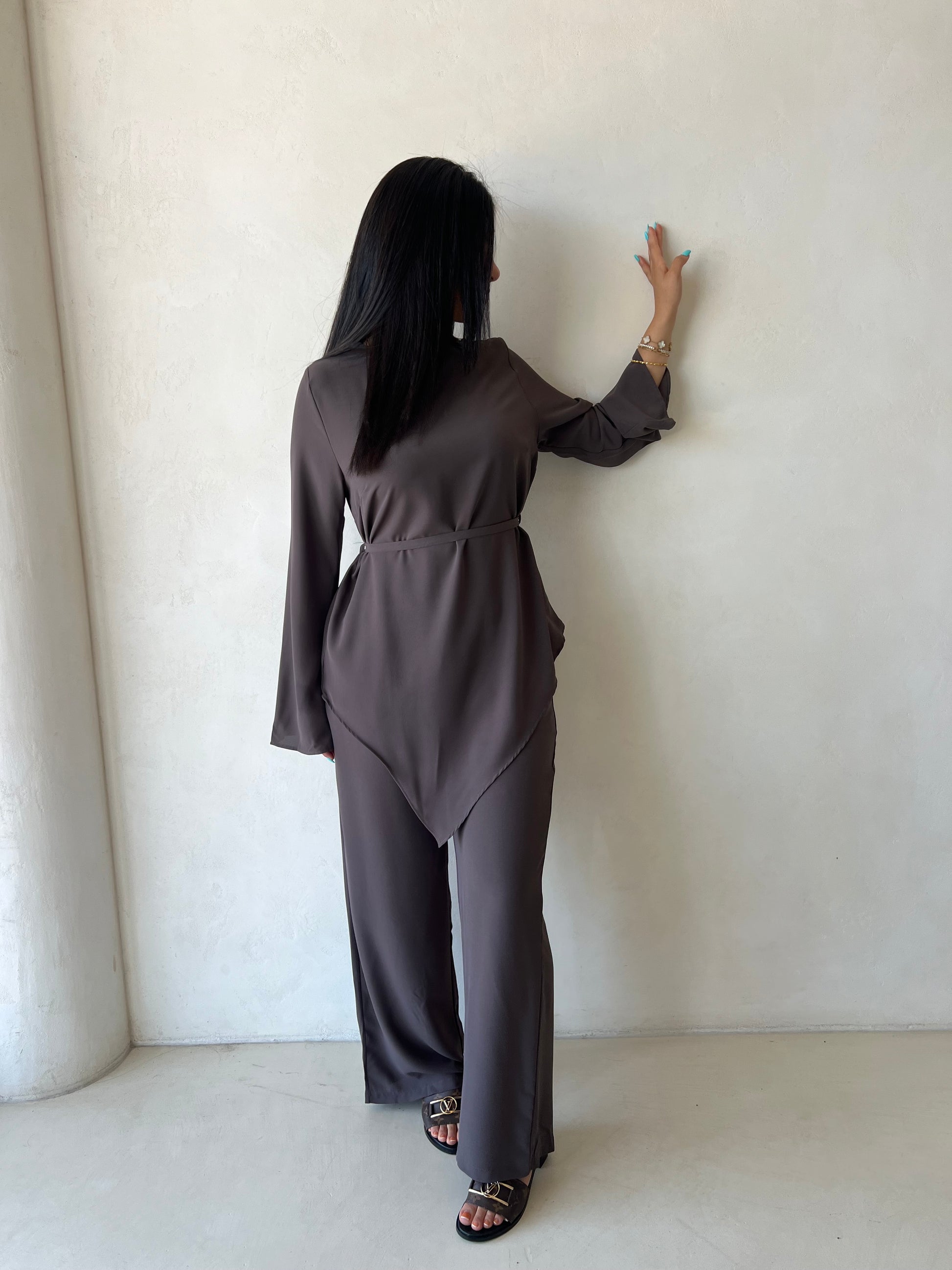 Features an asymmetrical chic design and adjustable tie-back so you can style it your way — snatched, loose, crossed, however you love. Effortless + flattering every time 🤍