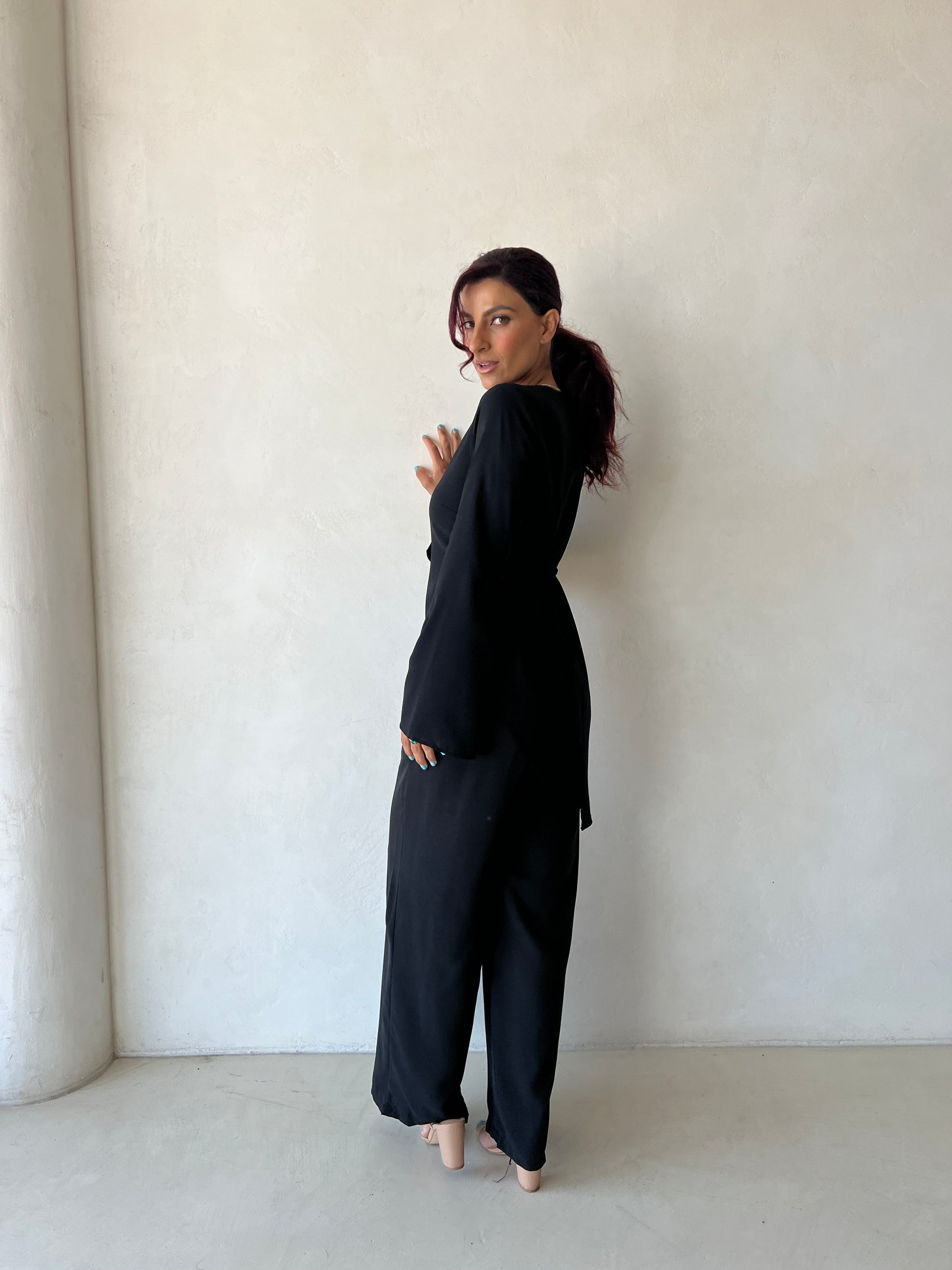 Features an asymmetrical chic design and adjustable tie-back so you can style it your way — snatched, loose, crossed, however you love. Effortless + flattering every time 🤍