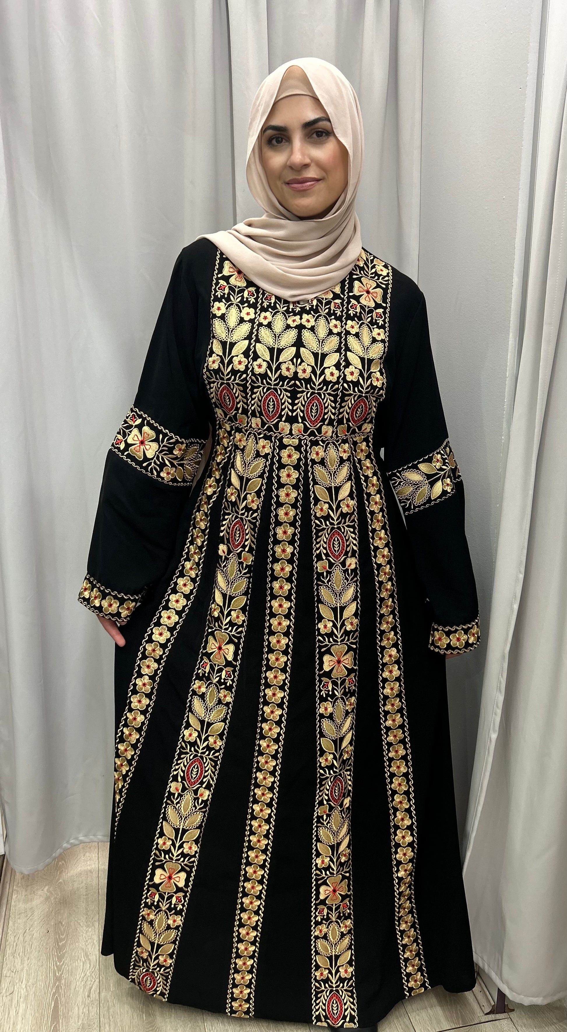 Palestinian Traditional Embroided Tatreez Thobe dresses with bell sleeves. Made in Jordan. High Quality material. Silk thread. Recommended to get a size up as our Abayas are small make.