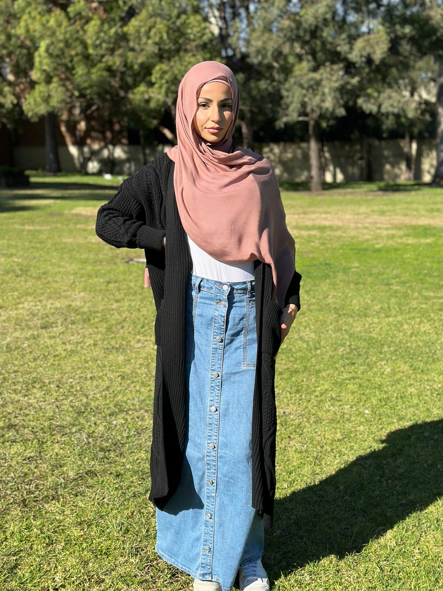 Elevate your ensemble with My Designer Closet’s new signature hijab, the Viscose Look Scarf. This luxurious hijab, crafted from high-quality viscose, offers a refined appearance with effortless maintenance. It comes complete with a matching cap, making it the ideal choice.