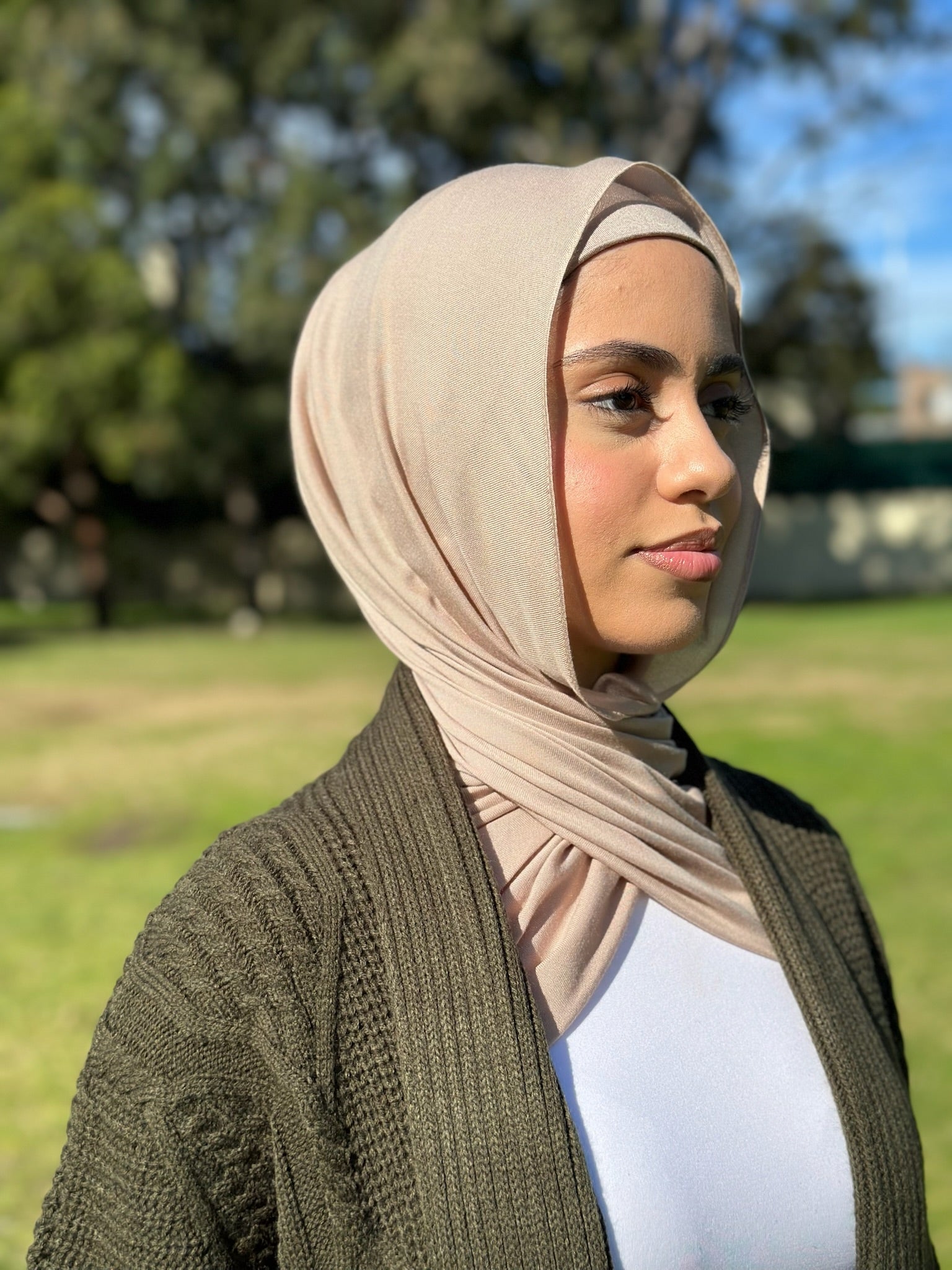Elevate your ensemble with My Designer Closet’s new signature hijab, the Viscose Look Scarf. This luxurious hijab, crafted from high-quality viscose, offers a refined appearance with effortless maintenance. It comes complete with a matching cap, making it the ideal choice.